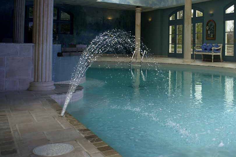 The WMF Series, Crown Jet is a nozzle designed for interactive play or swimming pool perimeters. The nozzle creates two rows of angled streams that create a gentle double spray that arch into the pool.